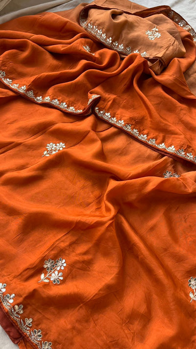 Crush slik sari with Stiched blouse fully handwork include Pearl & khatli work in cherry Red