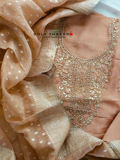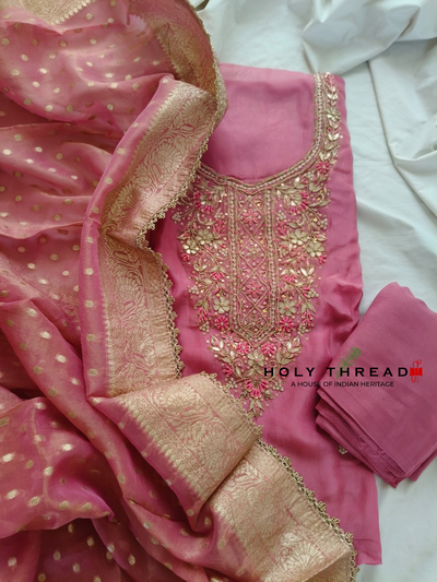 Wine Red Georgette bandhani suit with pearl and zardoshi work suit