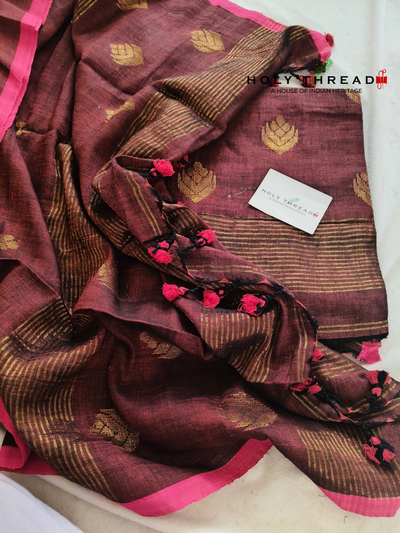Pure export quality Joyshree Linen with polka dot all over zari weaving suits wine