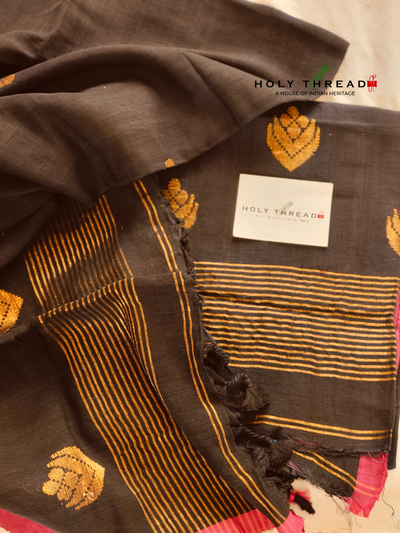 Pure export quality Joyshree Linen with polka dot all over Resham weaving suits in pale brown