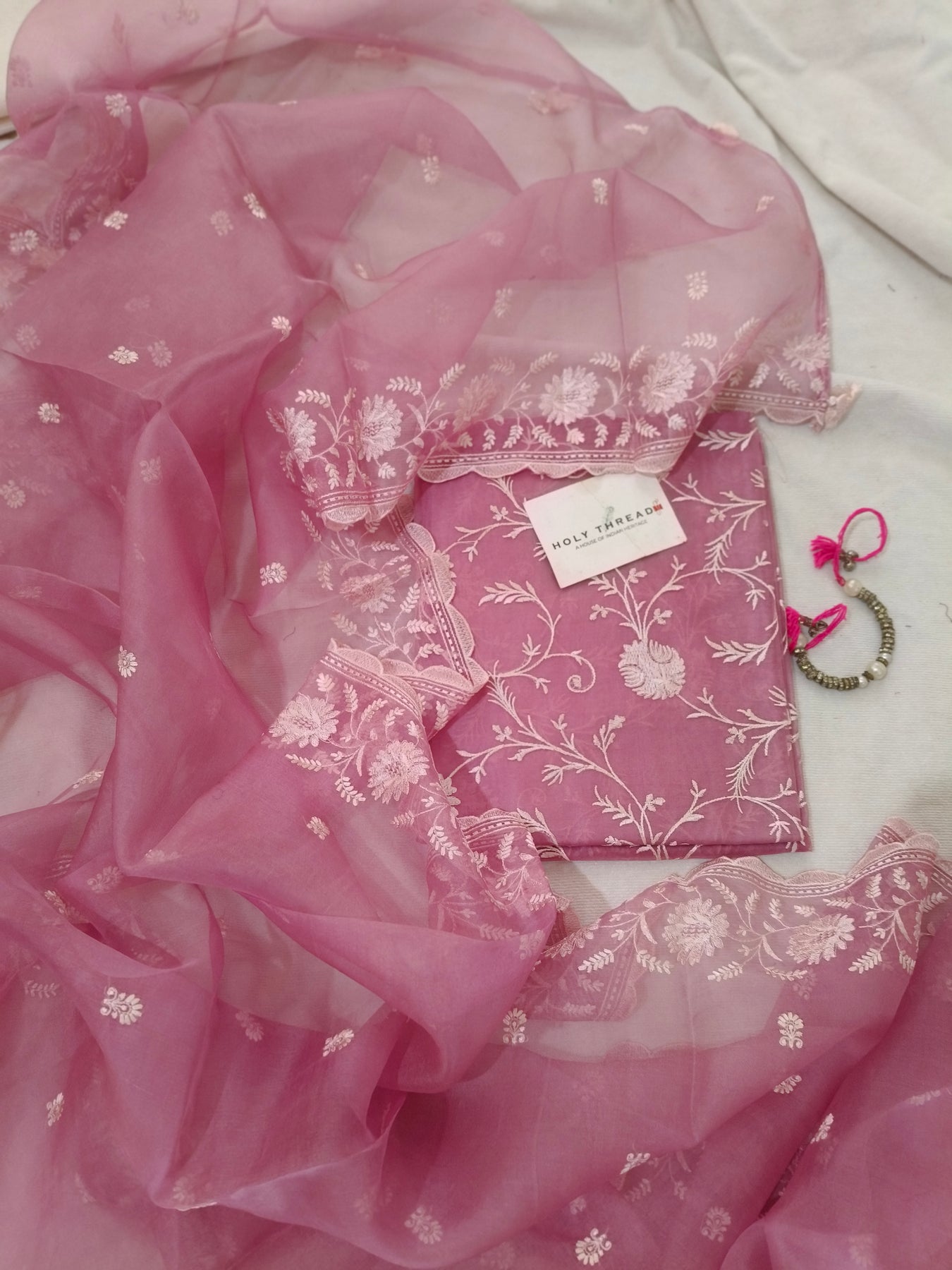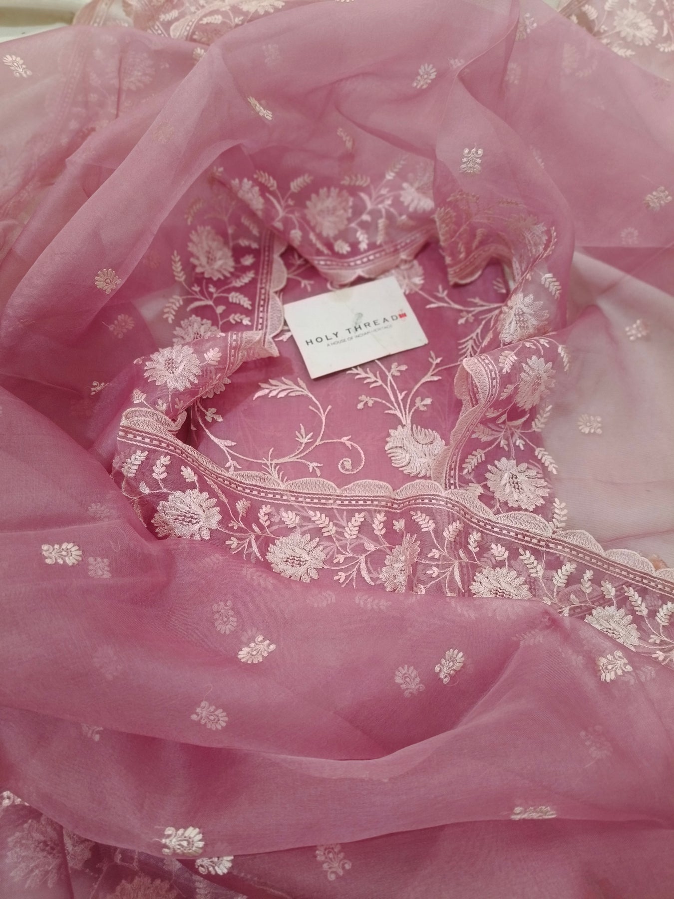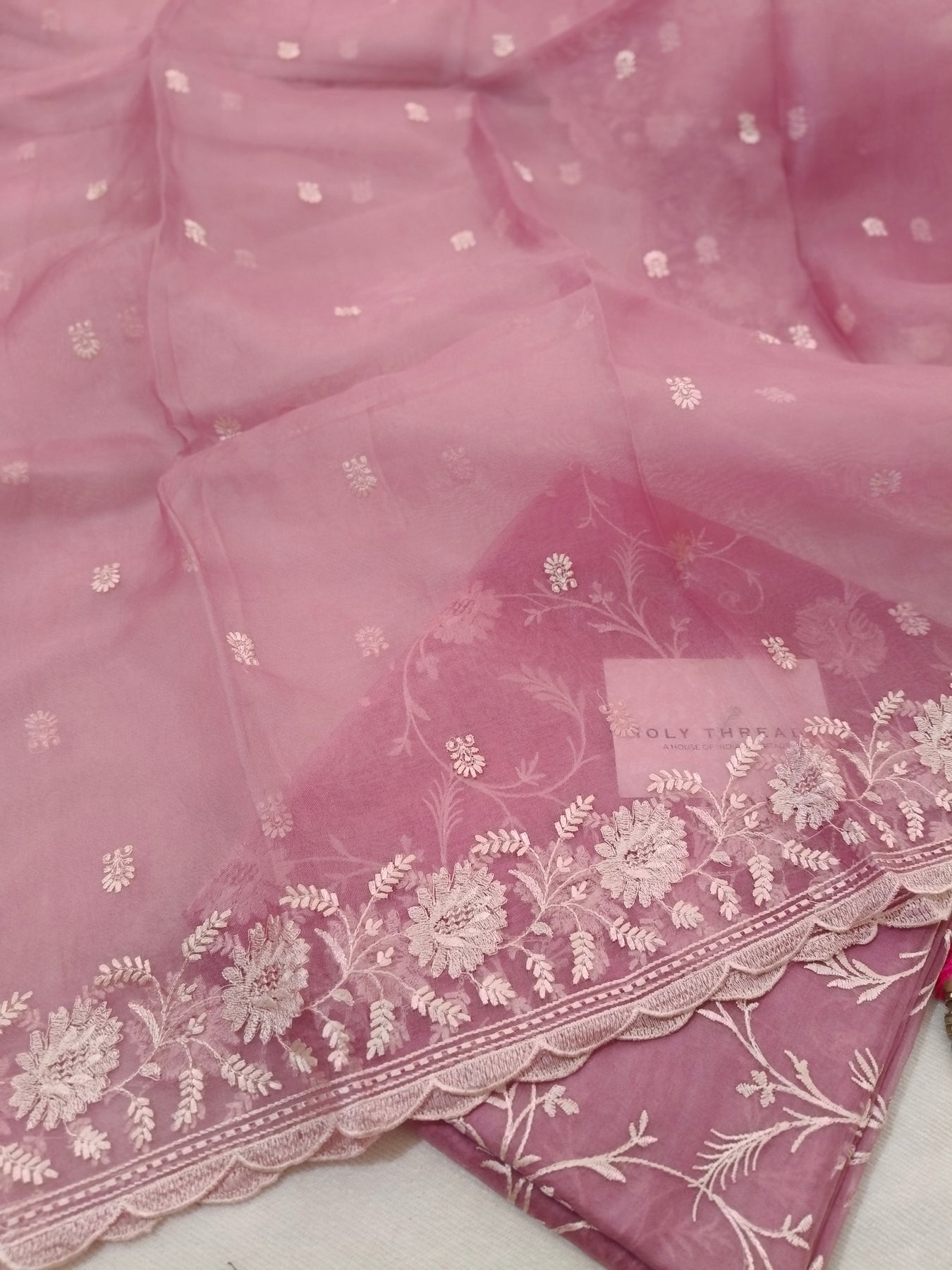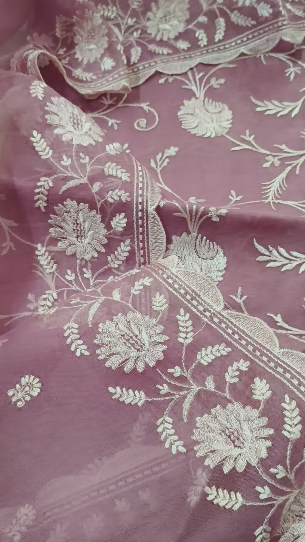 Dupatta -2.5 mtr allover single needle thread jaal work with scalloping border, in organza silk