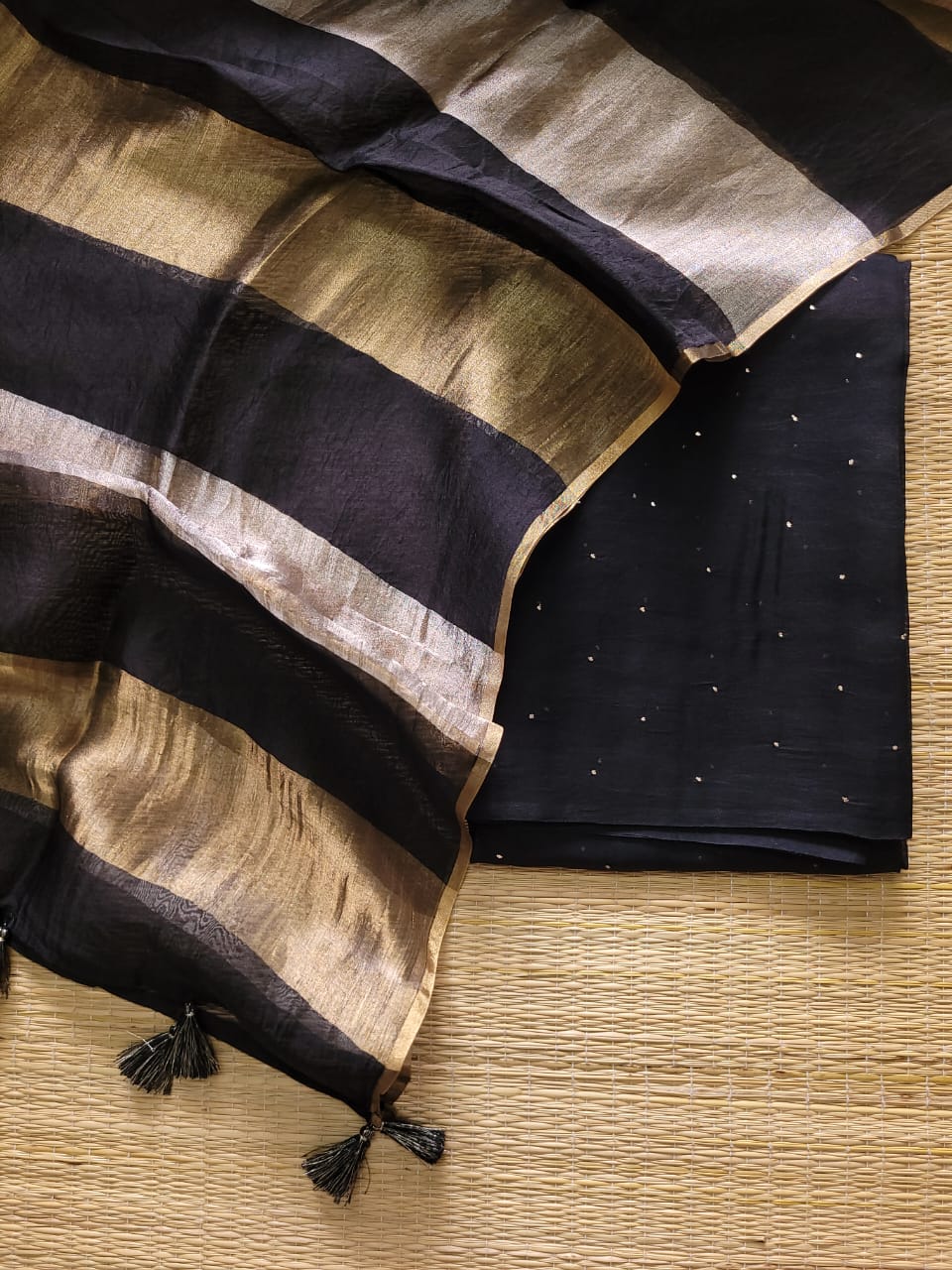 Banarasi pure premium quality organza kora silk suit in black