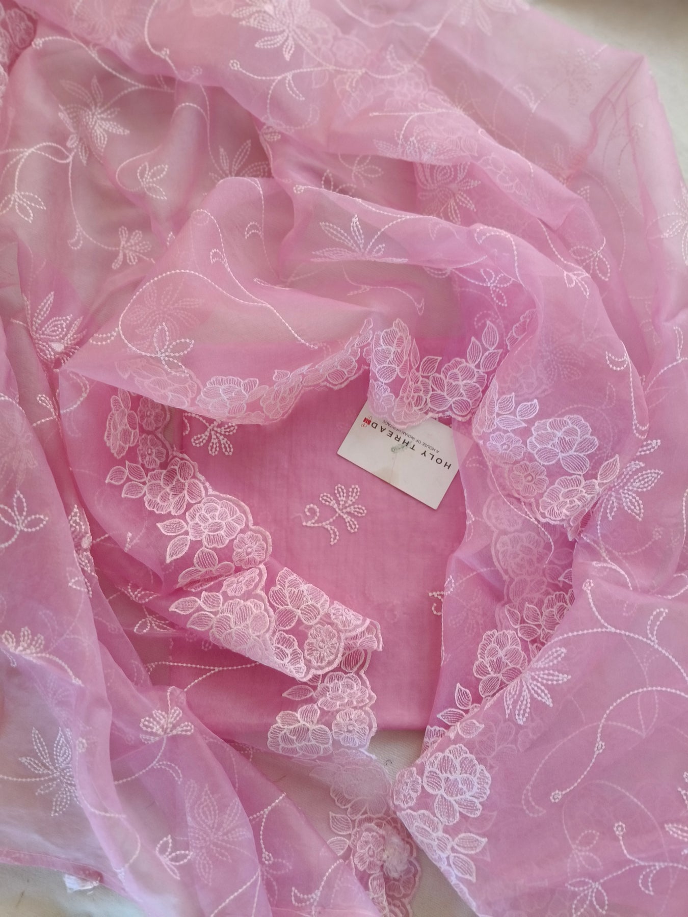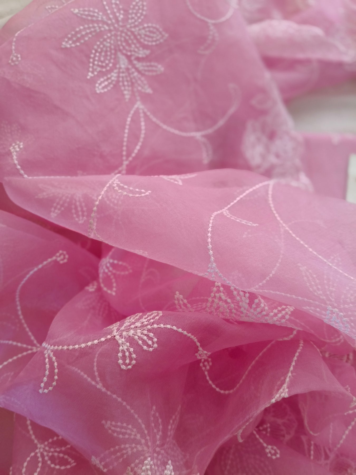 Dupatta -2.5 mtr allover single needle thread jaal work with scalloping border, in organza silk