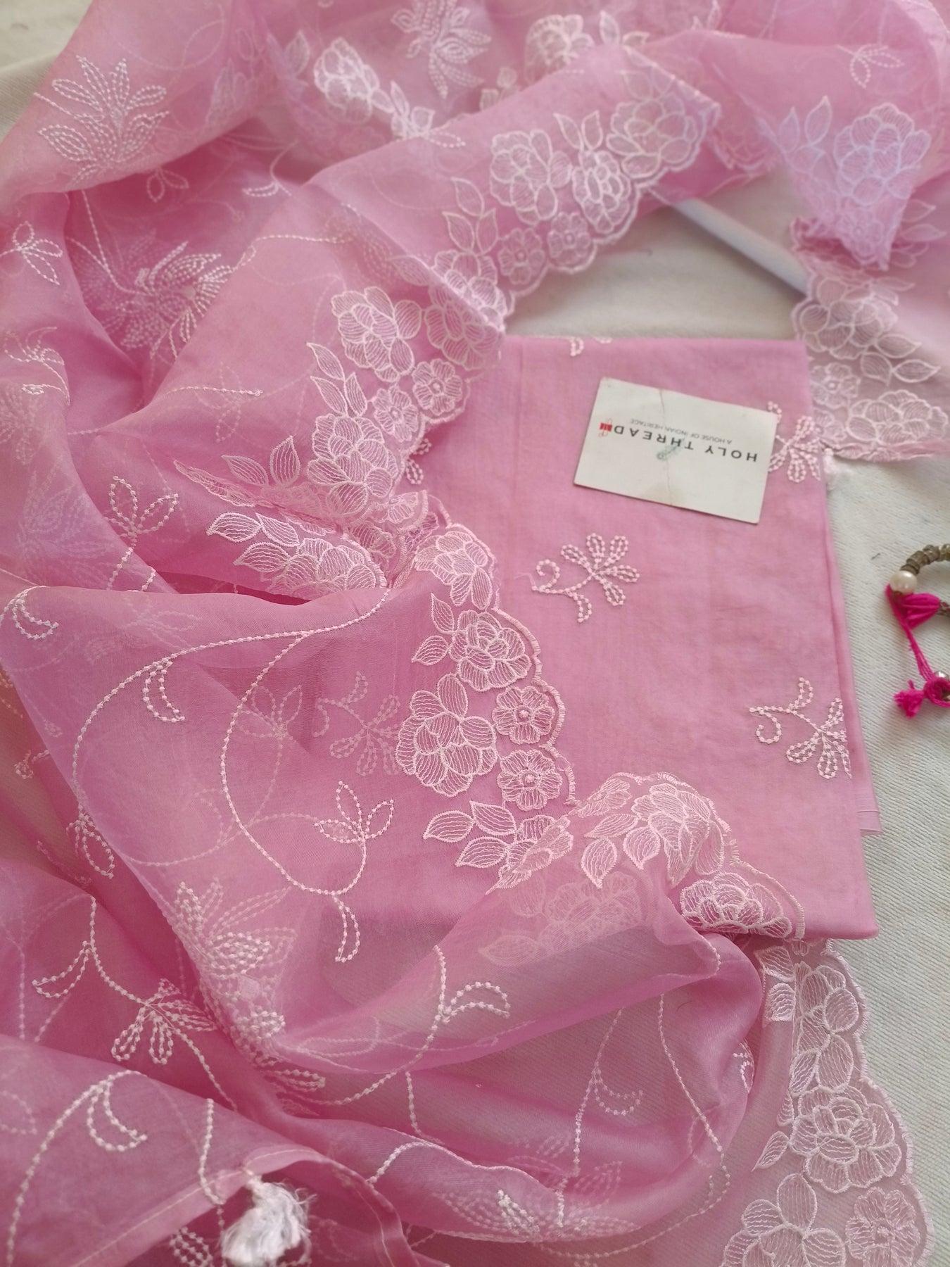Pure organza silk suit in light pink