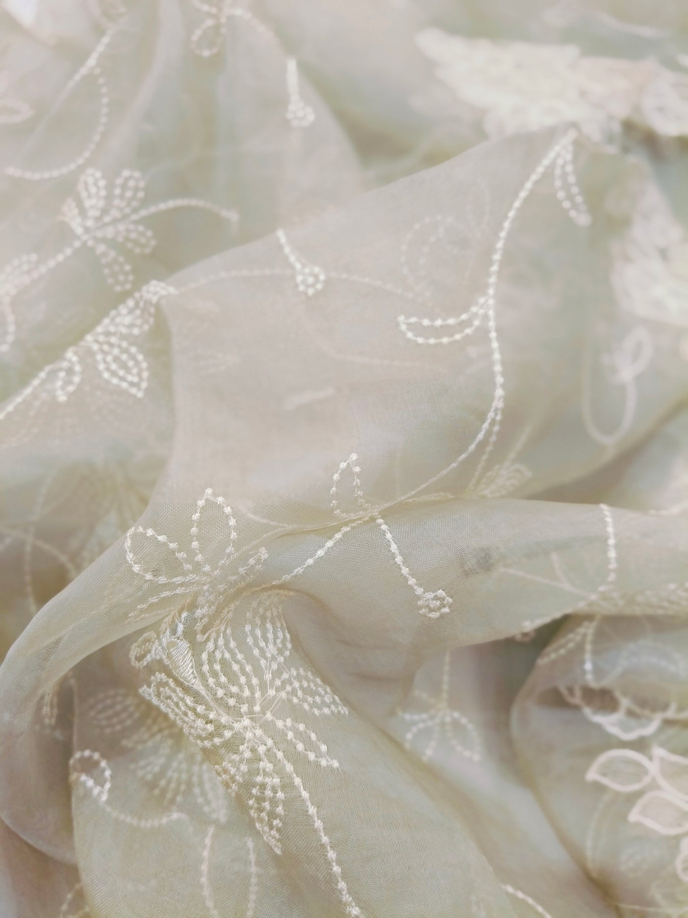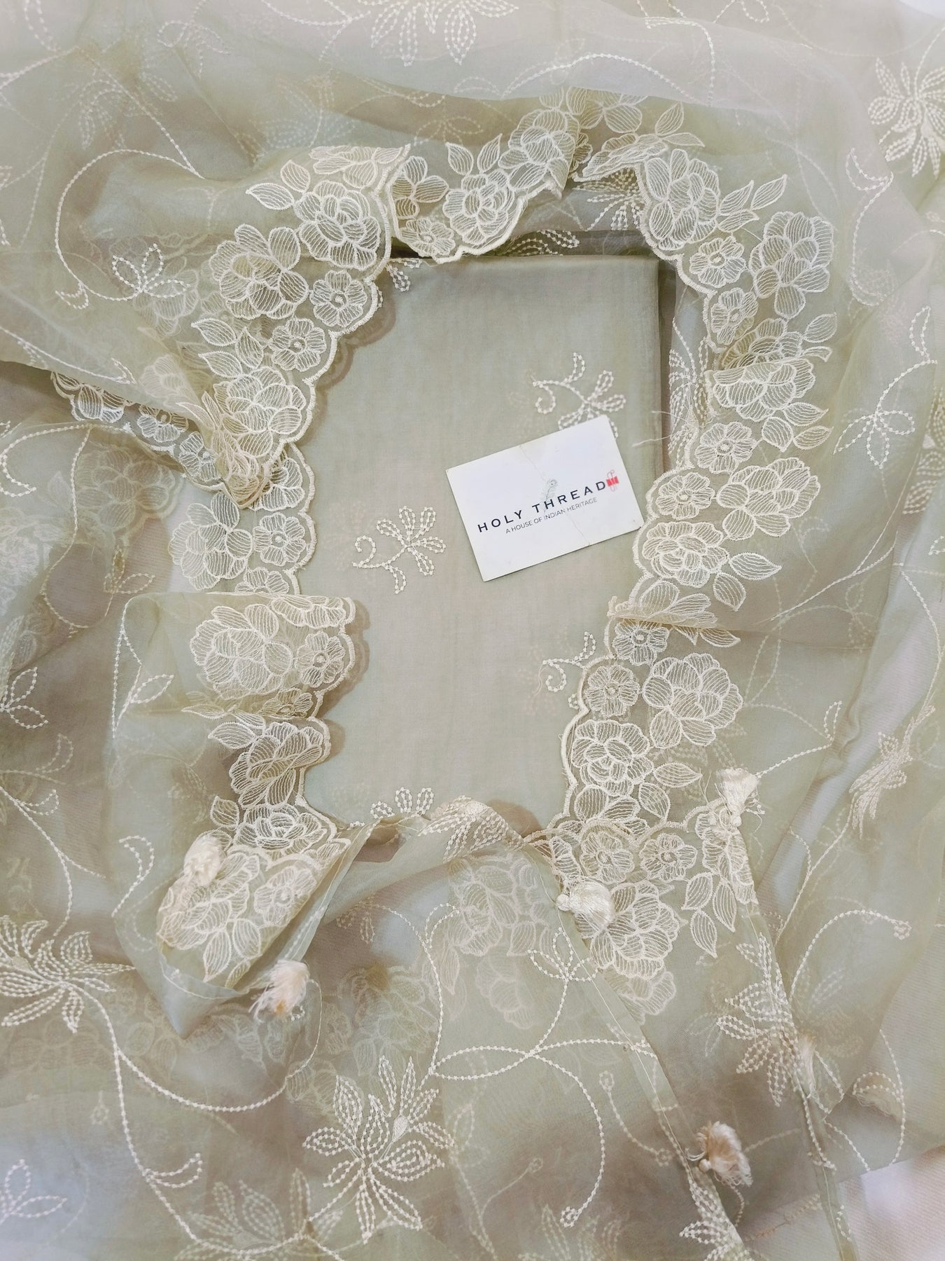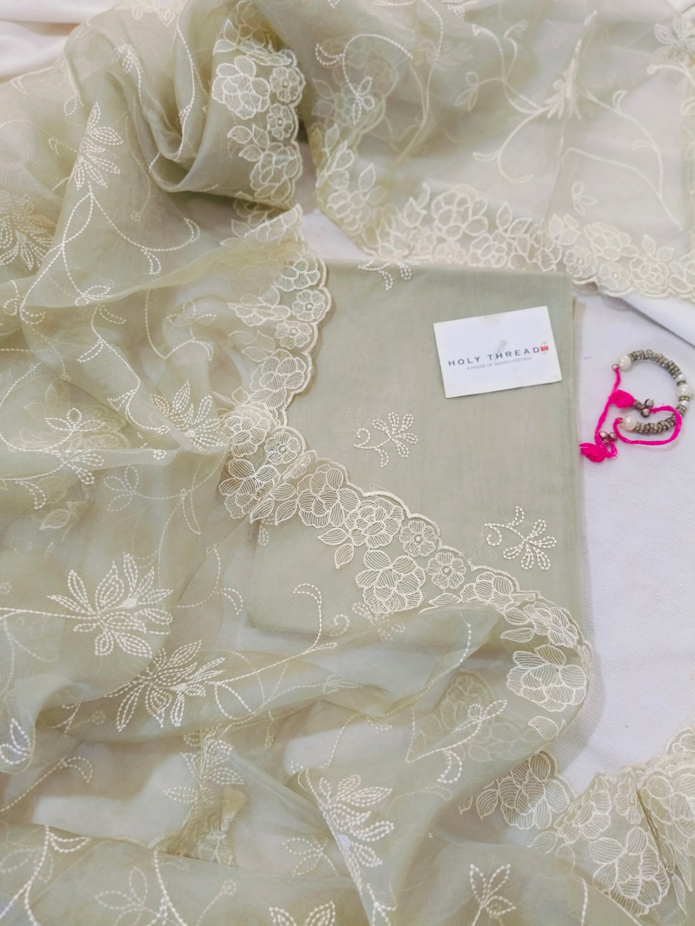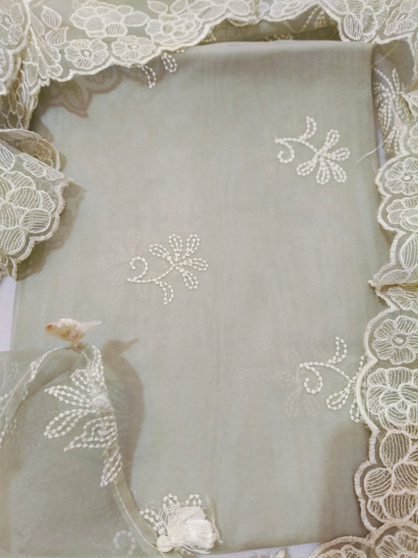 Dupatta -2.5 mtr allover single needle thread jaal work with scalloping border, in organza silk