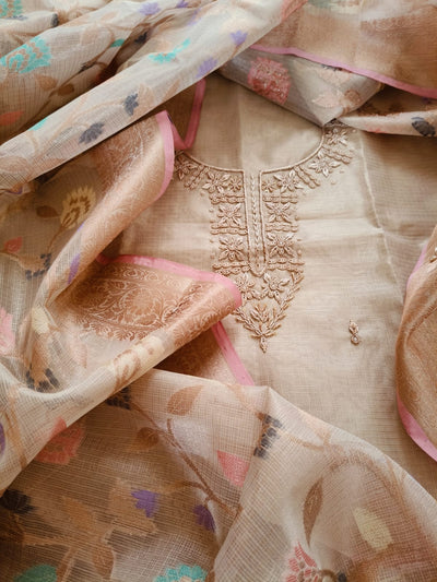 We ensure that there is something suitable for your personality and occasion with our collection, which features a variety of styles ranging from traditional themes to modern patterns. Our Kota Doria suits are a classy and refined choice for every occasion, whether you're searching for a sophisticated look for a formal gathering or an easily adaptable for everyday outfit.