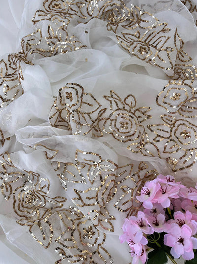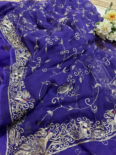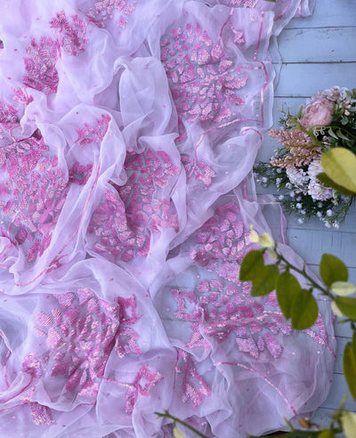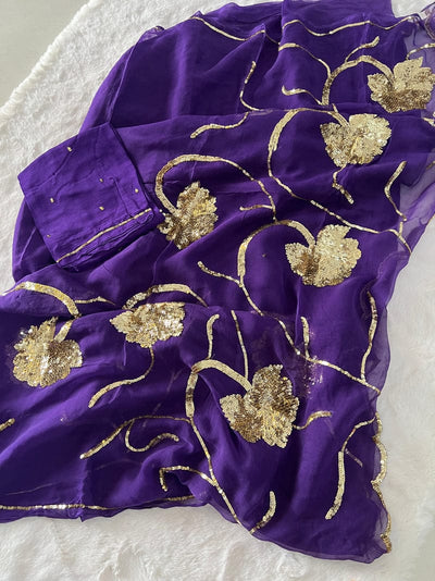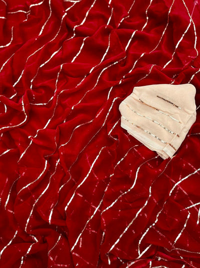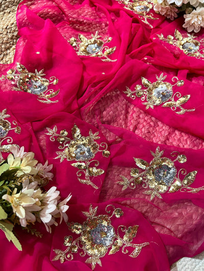 Pure chiffon handwork sari in red with tone to tone sequin work