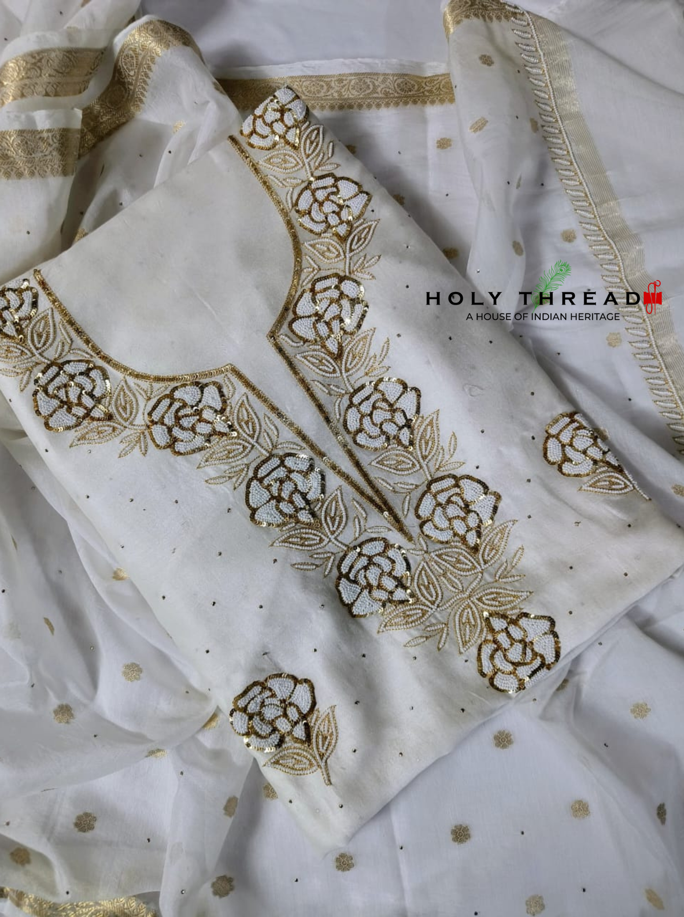 Explore our range of Banarasi sarees and unstitched suits which will surely a touch of transcending traditions to your wardrobe!