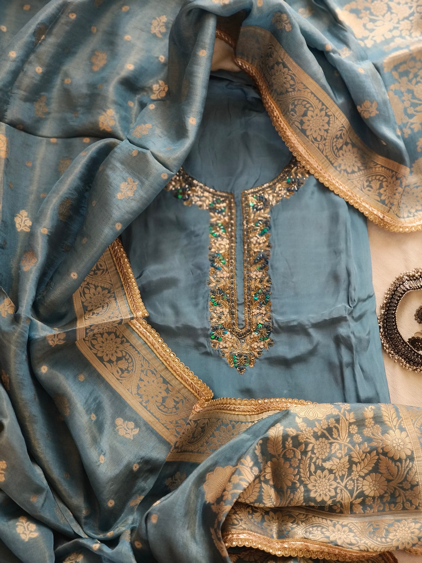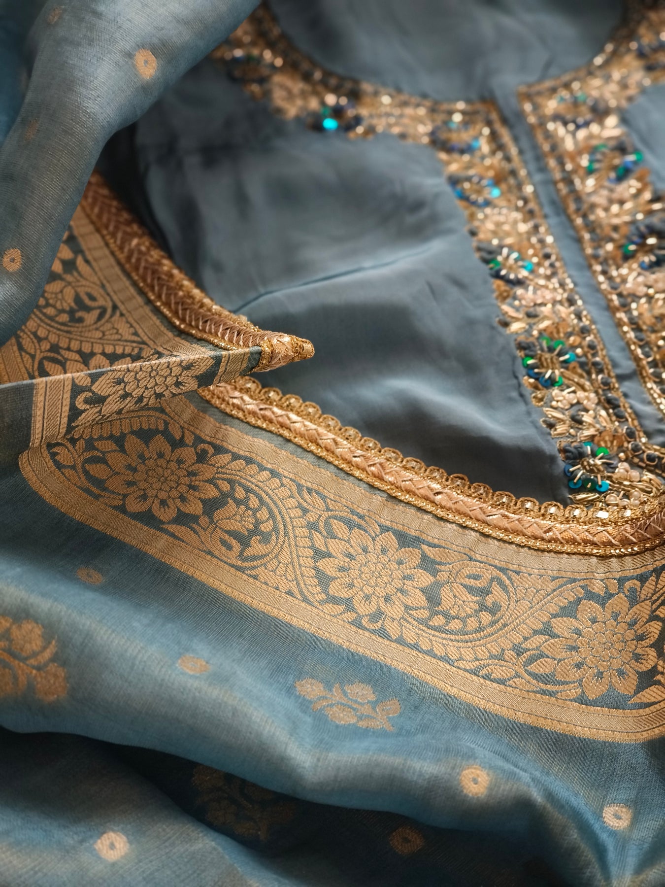 Dupatta- soft tissue georgette silkfabric with zari weaved motif and border