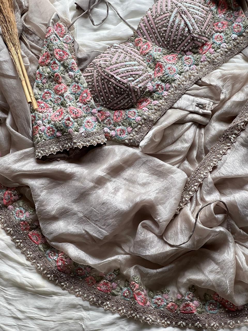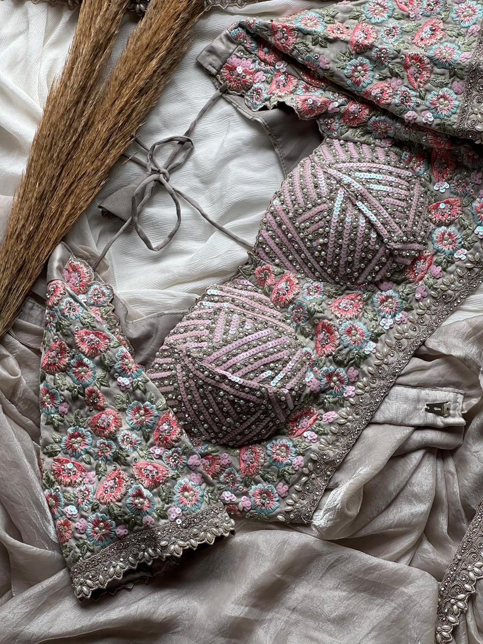• Blouse- stiched heavy pearl and thread work allover
